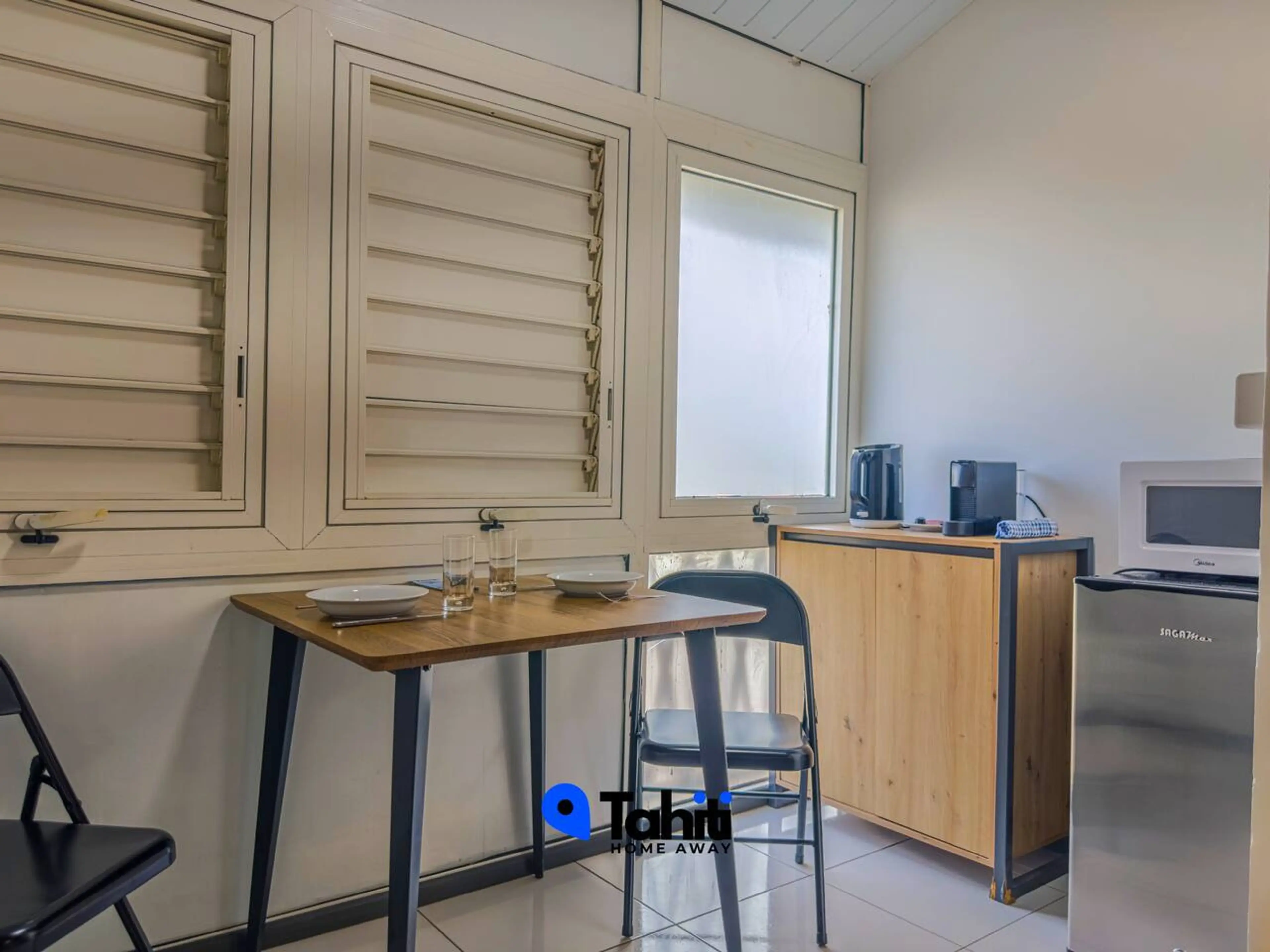 Chambre climatisée avec salle de bain privée au Manini Airport Lodge, à seulement 10 min à pied de l’aéroport. Idéal pour une escale ou un court séjour. Équipée d’une machine à café, frigo, micro-ondes et bouilloire. Juste au-dessus d’un magasin d’alimentation traiteur, à côté du Snack Chez Joe et d...