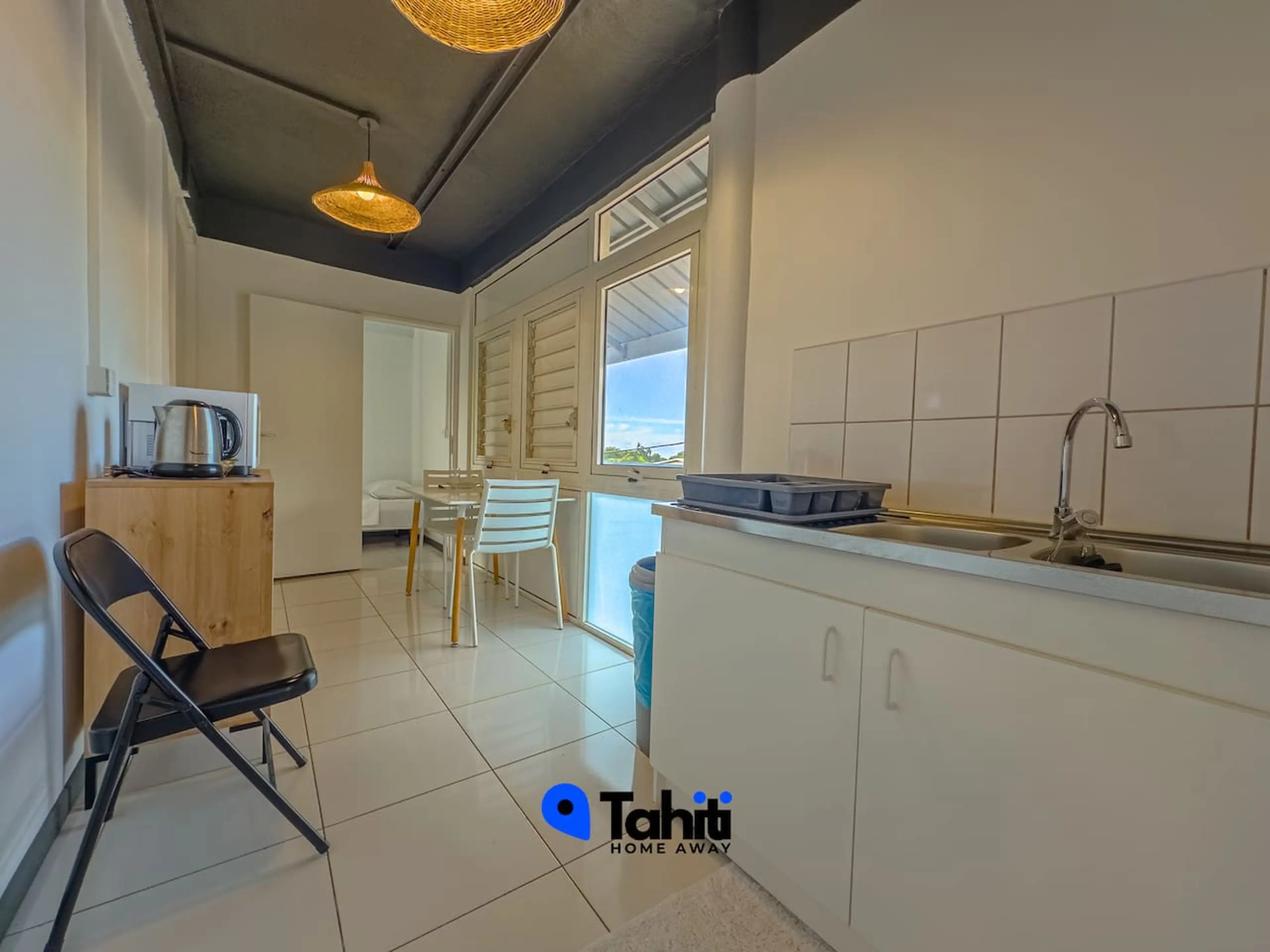 Chambre climatisée avec salle de bain privée au Manini Airport Lodge, à seulement 10 min à pied de l’aéroport. Idéal pour une escale ou un court séjour. Équipée d’une machine à café, frigo, micro-ondes et bouilloire. Juste au-dessus d’un magasin d’alimentation traiteur, à côté du Snack Chez Joe et d...
